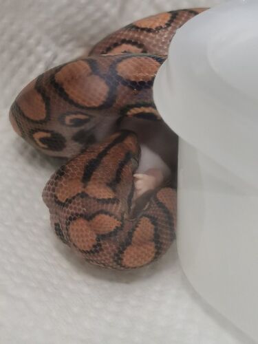 飯のお時間でした 今日は上手に頭から一息でした ファジーもずいぶん食べ慣れてきたね すくすく大きくなってます🐍